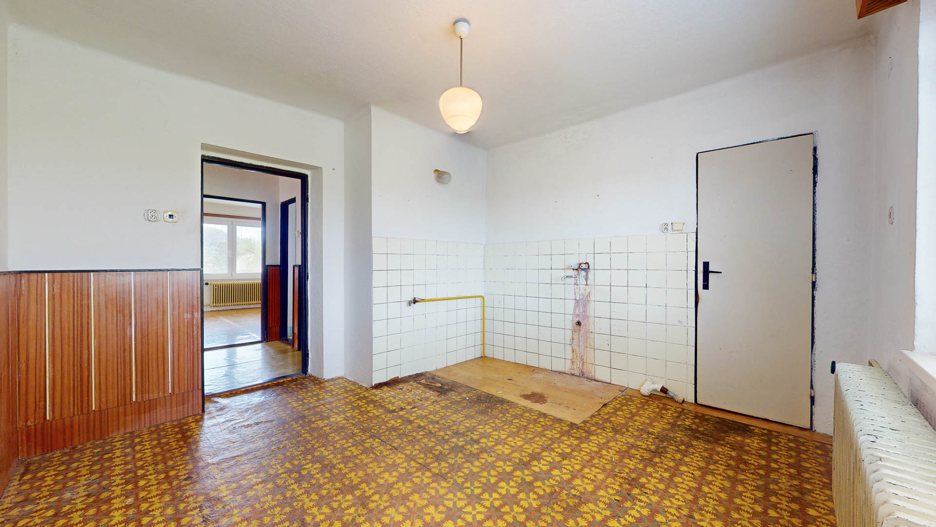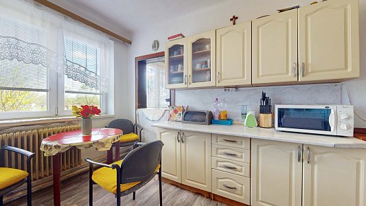 Bol postavený okolo roku 1976 z kvádrov. Pozostáva z 2 podlaží. Na každom podlaží sú tri izby, kuchyňa, kúpeľňa a samostatné WC. Na prvom podlaží je chodba, predsieň, vstup do menšej pivničky, malá miestnosť pri vchode do domu a kotolňa s plynovým kotlom, ktorý bol vymenený pred 3 rokmi. V celom dome boli vymenené plastové okná zhruba pred 10 rokmi. Rozvody elektriny sú pôvodné, ale medené. Strecha je plechová. Ohrev vody je zabezpečený novým elektrickým bojlerom. Voda je zo studne - darling vymenený pred 2 rokmi. Dom je odizolovaný od spodnej vody.